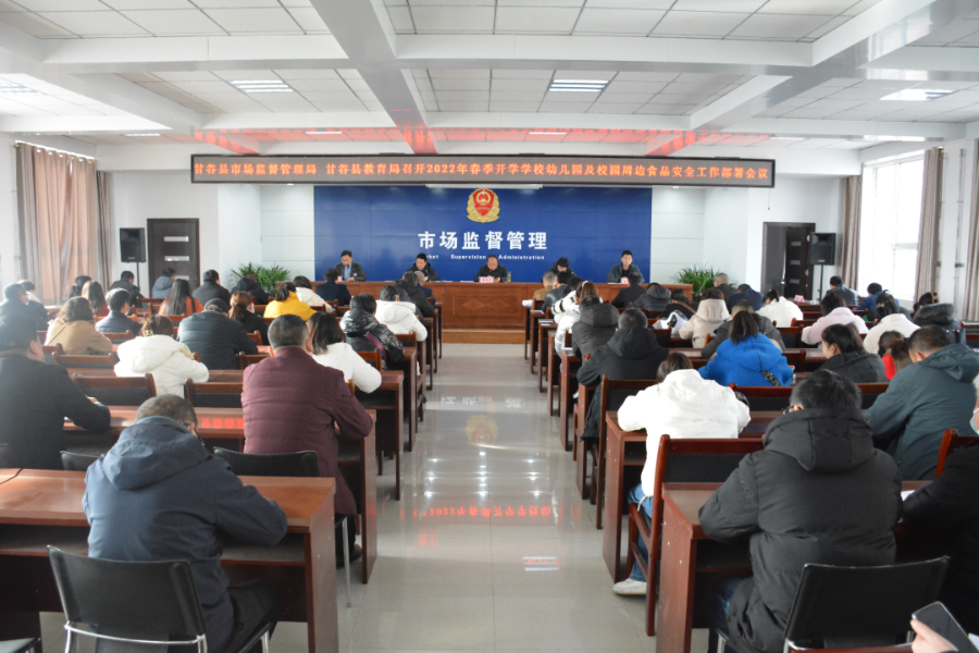为切实加强春季学校幼儿园及校园周边食品安全监管,落实疫情防控措施,严防食源性疾病的发生,全面保障广大师生身体健康和生命安全,3月1日,甘谷县市场监督管理局联合甘谷县教育局召开2022年春季开学学校幼儿园及校园周边食品安全工作部署会。县市场监督管理局、县教育局、各乡镇市场监管所负责人、学校代表、食堂负责人等共计100余人参加会议。