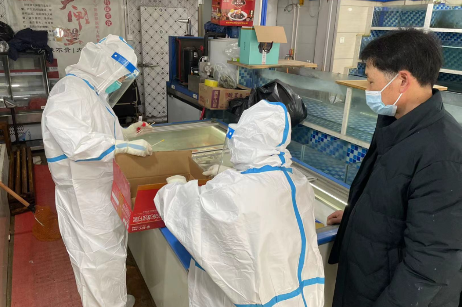 截至目前,共出动执法人员110人次,检查市场主体107户,现场督促整改26户,核酸采样420份,检测结果均为阴性,其中,从业人数134份,食品及环境样本286份。