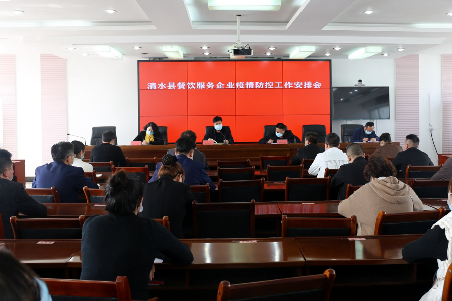 为应对近期疫情新变化,做好新形势下疫情防控工作,3月12日,清水县市场监督管理局组织全县39家餐饮服务单位召开疫情防控工作安排会,就落实餐饮服务单位疫情防控措施进行了再安排、再部署。