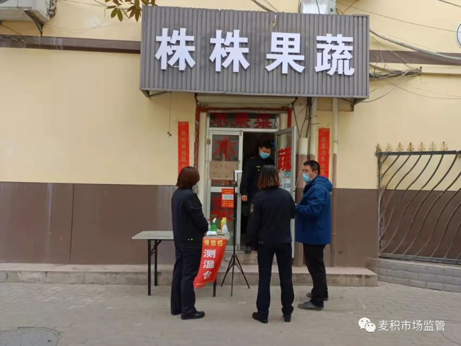 为全力遏制疫情扩散蔓延,麦积区市场监管局组织各市场监管所执法人员深入辖区各街道、市场进行监督检查。