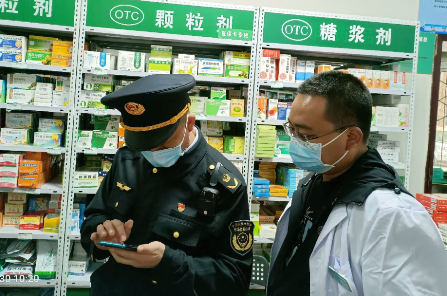 麦积区市场监管局执法人员不断督促药店扎实做好工作人员核酸“应检尽检”“四类药品”登记上报等疫情防控措施,及时纠正在疫情防控落实上存在的问题。现场查看了线上“四类药品”登记上报情况,重点检查网络销售“四类药品”数据上报的及时性完整性,并查看了药店工作人员的实际操作,对数据实时上报中存在的问题提出了改进意见。
