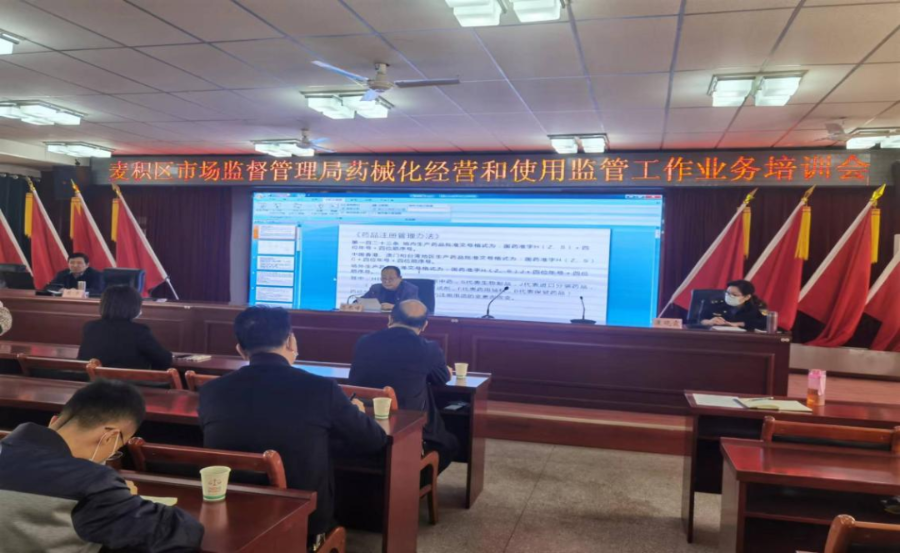 为提升全区药械化监管人员业务水平,打造一支药品专业化监管队伍,4月18日,麦积区市场监管局结合“强作风、优服务、抓落实、促发展”作风建设年活动要求召开了药械化经营和使用监管工作业务培训会,药械化股全体人员、各市场监管所负责人及药械化监管执法人员参加会议。