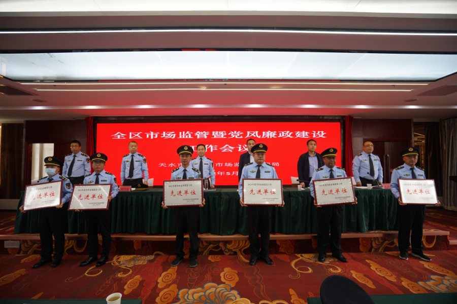 会议传达市委、市政府主要领导对市场监管工作的批示及全市市场监管工作会议精神,秦州区政府副区长惠斌作会议讲话,区纪委监委驻区委办纪检监察组长马勇作了党风廉政建设工作报告,区市场监管局党组书记、局长马念平作了工作报告,会议表彰了2021年度全区市场监管系统先进集体。