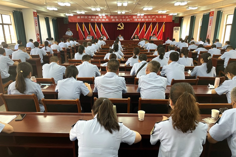为进一步提升市场监管干部业务素质和工作能力,建设一支业务精通、敢于担当、勤政务实、清正廉洁的高素质市场监管队伍,在全区市场监管系统营造“学业务技能、当岗位标兵”的浓厚氛围,6月16日,麦积区市场监管局“喜迎二十大”暨以安全生产为主题“岗位大练兵 业务大比武”活动正式启动。