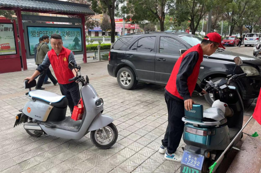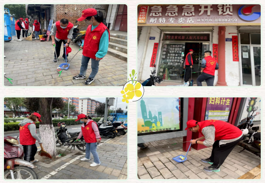 8月26日,省质检东部分中心的志愿者们走进商铺、医院、酒店、社区服务站,一是仔细查看“场所码”设置是否规范,督促各商家对顾客落实扫码要求,劝导居民戴好口罩,做好个人防护,持续巩固疫情防控成果;二是针对包街区域非机动车辆乱停乱放的现象,志愿者们齐上阵,将未停放到规定区域的车辆进行挪移,保持人行通道畅通和环境秩序整齐;三是对包街区域进行卫生清理。花园边、公园里处处都有“志愿红”在躬身服务,街道更加干净,环境更加优美,人民更加幸福。
