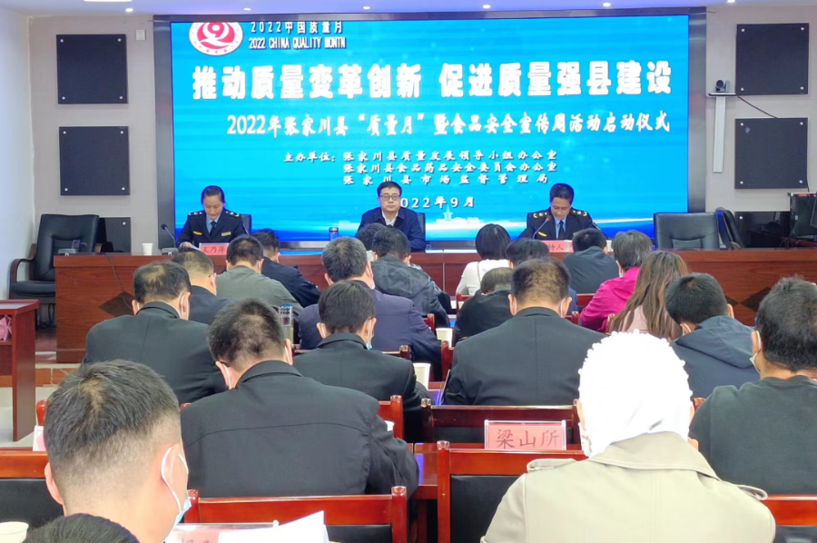 9月8日,张家川县组织召开2022年“质量月”暨食品安全宣传周活动启动会议。县政府副县长马少雄出席会议并讲话,全县质量发展领导小组相关成员单位分管领导、各乡镇市场监管所所长、有关企业负责人共四十余人参加会议。