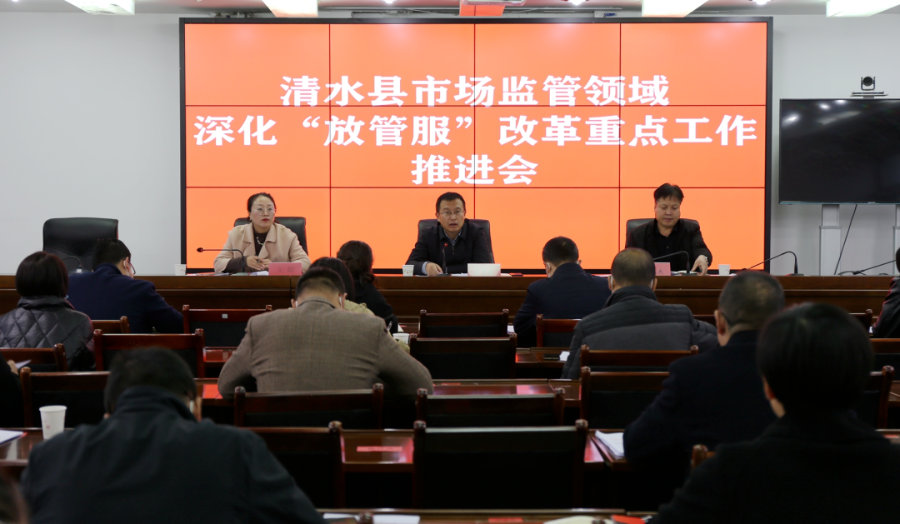 10月14日,清水县召开市场监管领域深化“放管服”改革重点工作推进会。副县长金学民出席会议并讲话,县直有关部门分管领导参加会议。
