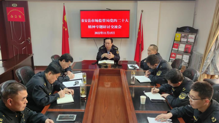 11月15日,秦安县市场监管局党组理论学习中心组围绕学习宣传贯彻党的二十大精神开展专题学习研讨,集体学习了《中共中央关于认真学习宣传贯彻党的二十大精神的决定》《关于进一步优化新冠肺炎疫情防控措施科学精准做好防控工作的通知》,全体党组理论学习中心组成员进行研讨交流。