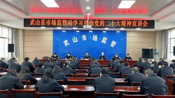 近日,武山县市场监管局召开学习贯彻党的二十大精神宣讲会,局党组书记、局长王立明做宣讲报告,局分管领导、各乡镇市场监管所负责人、局机关全体干部职工,共计50余人参加会议。