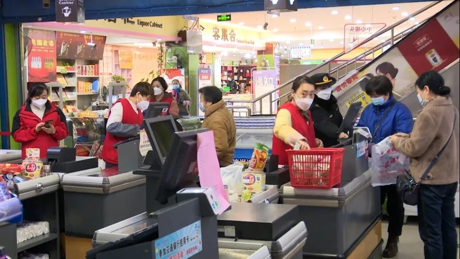 超市是物资供应的最末端,联系着千家万户,落实疫情防控措施尤为重要。记者在绿色市场的一家大型超市入口处看到,顾客有序扫码进入。“在超市入口对所有进店的顾客进行‘一扫三查’,要求有72小时之内的核酸阴性结果。”超市店长康志强说。超市内,货架上各类商品摆放整齐,供应充足,和大家日常生活密切相关的蔬菜、米、面、油等物资种类丰富、货足价稳。在收银结账处,所有顾客均佩戴口罩,严格遵守一米线距离,有序排队结账,超市也安排专人在收银台做好监督工作。