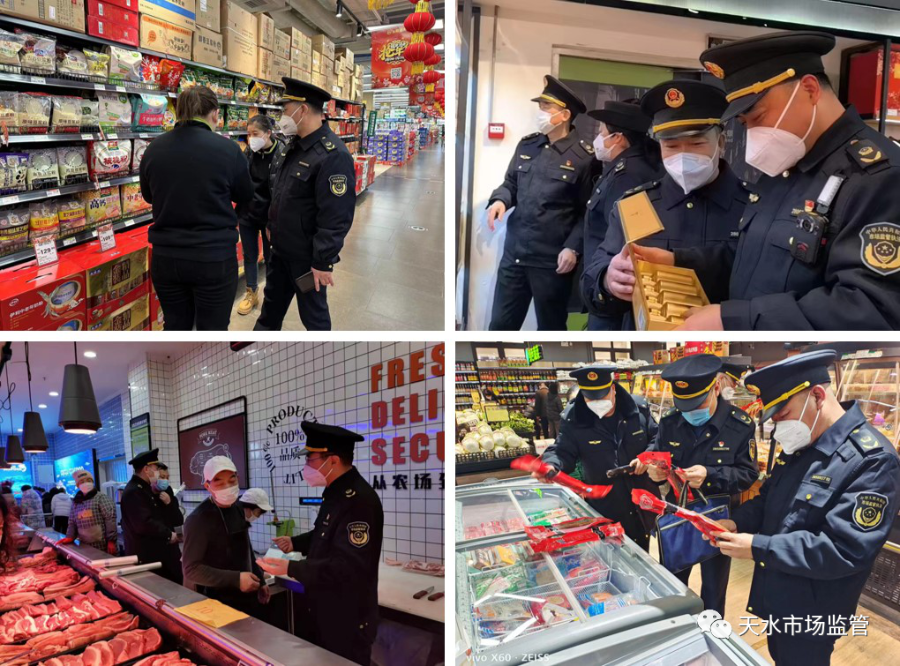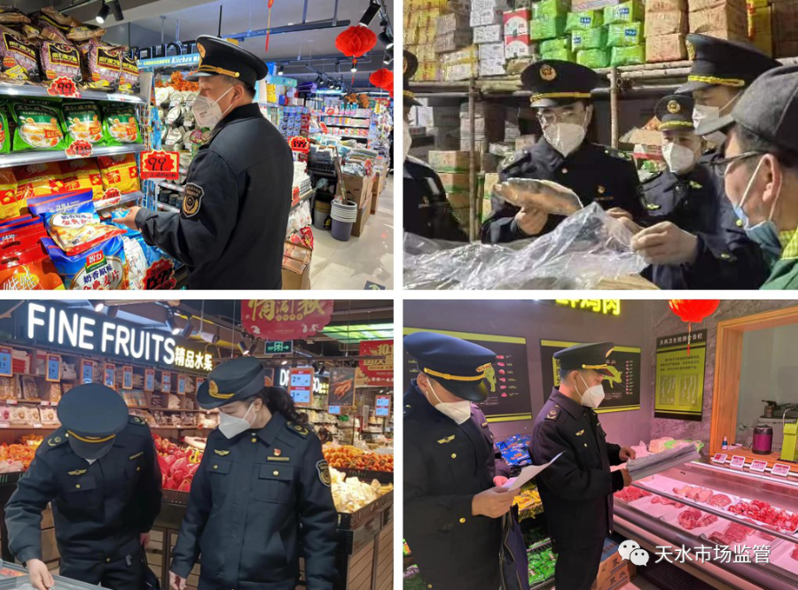 春节将至,为及时消除和防范辖区内各类食品安全风险,切实保障广大人民群众过一个平安、祥和的春节,近日,按照市市场监管局统一安排部署,天水市市场监管综合行政执法队结合食品安全“守底线 查隐患 保安全”专项行动,组织精干执法力量开展春节前食品安全专项执法检查行动,在秦州、麦积两区范围内大力排查食品安全风险隐患,全力保障人民群众节日期间“舌尖上的安全”。