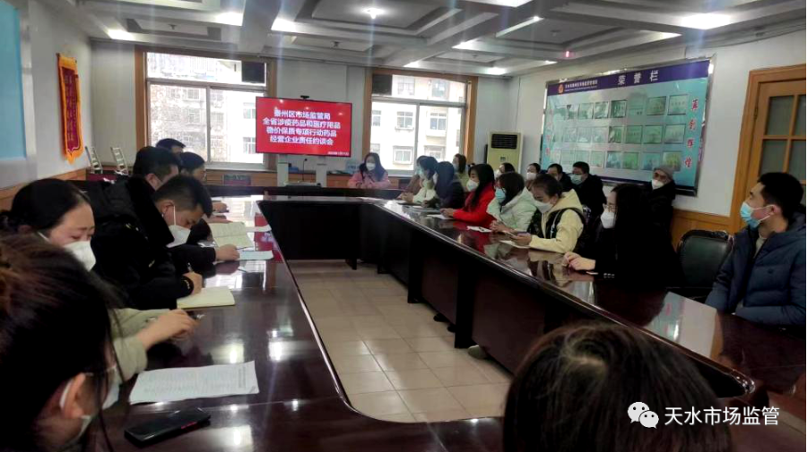 为切实保障人民群众合法权益,有效维护市场秩序,更好服务全区经济发展,近日,秦州区市场监督管理局组织辖区零售药店召开了涉疫药品和医疗用品稳价保质专项行动药品经营企业责任约谈会,全区零售药店负责人共计40余人参加会议。