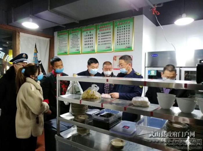 为加强餐饮服务环节复工复产期间的食品安全监管,保证餐饮单位有序复工复产,保障全县人民群众生命安全和身体健康,近期,武山县市场监管局积极组织执法人员对城关、洛门等地恢复营业的各类餐饮服务单位开展夜查夜巡工作。督促餐饮服务提供者严格落实各项疫情防控措施和食品安全主体责任,加强食品加工过程管控,保证消费者饮食安全。