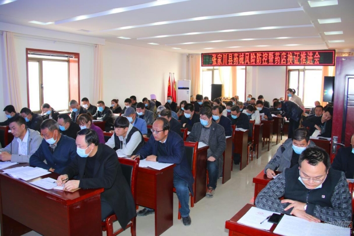 为进一步贯彻落实新修订的《药品管理法》,规范药品经营行为,全面推进2020年药械风险防控工作,进一步筑牢药品安全监管防线。3月24日,张家川县市场监管局召开药械风险防控暨药店换证工作推进会,县市场监管局领导班子成员、药械股全体人员及全县药品批发零售企业负责人共80余人参加了会议。