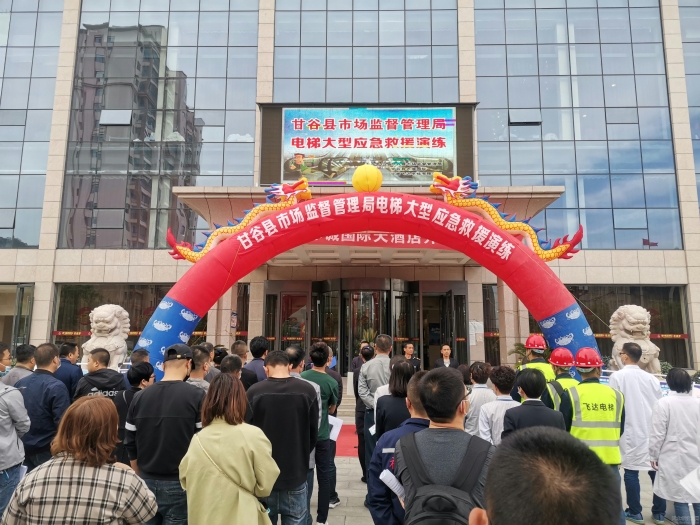 4月28日下午,甘谷县市场监管局组织开展了电梯应急救援演练。演练现场设在甘谷县赤诚国际大酒店,甘肃飞达电梯有限公司和大像山卫生院等单位参与演练。