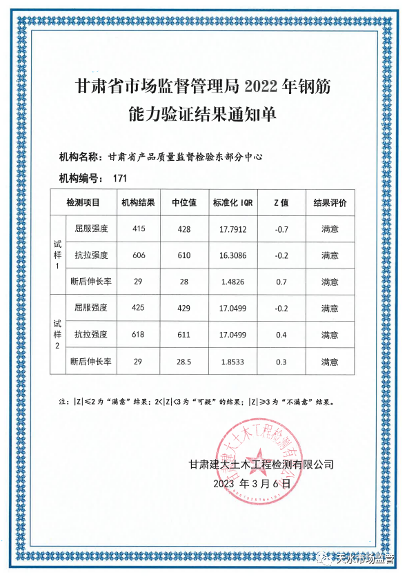 为进一步提升检验检测活动的规范性,近期,省质检东部分中心参加2022年度甘肃省检验检测机构钢材拉伸试验能力验证,各项目均获得满意成绩。