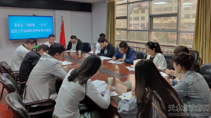 为进一步深化商事制度和“放管服”改革,全面推进“双随机、一公开”监管,6月11日,秦安县市场监督管理局组织召开了县级部门联合“双随机、一公开”监管工作推进暨业务培训会。县商务局、教育局等15家“双随机、一公开”监管联席会议成员单位具体业务承办人参加了会议。