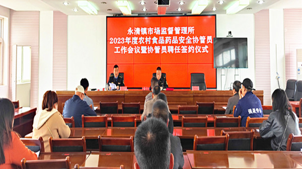 会上,永清镇市场监管所与各村食品药品安全协管员签订了《聘任合同》,通报了2022年度以来永清镇食品药品安全形势和18村红白喜事集体聚餐备案登记情况,并为2022年度“先进工作者”颁发了奖状,同时对2023年全镇农村食品药品安全和村级食品药品安全协管员的工作进行了安排。