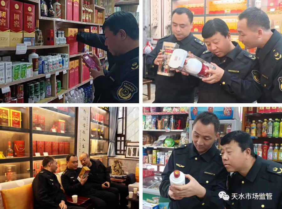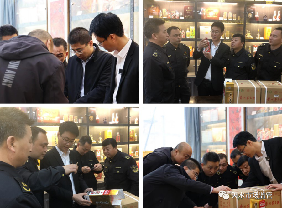 为进一步遏制商标侵权及制假、售假行为,提升知识产权保护能力,优化营商环境,天水市市场监管综合行政执法队以“三抓三促”行动为契机,结合我市“双打”工作实际,深入开展了打击假冒贵州茅台等名酒专项执法行动。