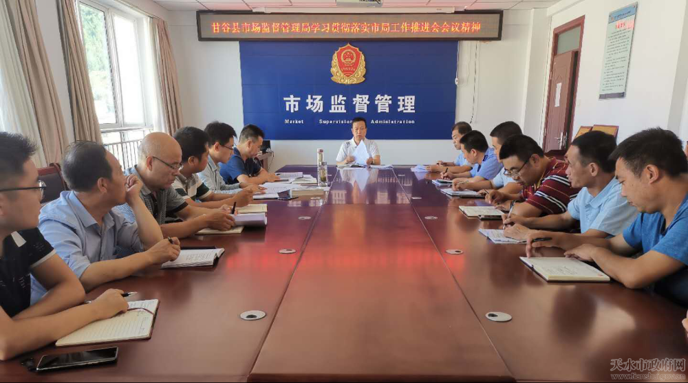 甘谷县市场监管局:8月5日,甘谷县市场监管局召开局党组中心组专题学习会议和机关干部职工大会。传达贯彻全市市场监管工作推进会精神,认真学习市局党组书记、局长王宏玮及各分管领导在市市场监管工作推进会上的讲话要求。