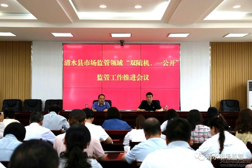为进一步强化事中事后监管,规范执法行为,营造公平竞争的市场环境,8月11日,全省市场监管领域部门联合“双随机、一公开”监管工作推进会议(视频)之后,清水县召开市场监管领域“双随机、一公开”监管工作推进会。参会的有县政府副县长安伟、县市场监督管理局党组书记、局长何宝平以及县公安局、住建局、卫健局、教育局等十五个相关单位分管领导、业务负责人等共计三十余人。安伟副县长主持会议并讲话,何宝平局长通报了我县“双随机、一公开”监管工作的实施进展情况,分析了抽查工作中取得的成效及存在的问题,并对下一步重点工作进行部署。