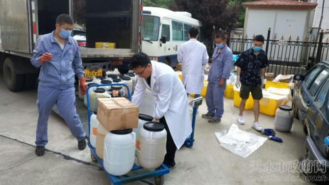 近期,天水市药检中心按照国家对危险废物处置的相关规定,对实验室产生的危险废弃物进行集中收集,联合市食检中心将0.75吨库存的实验室有机废液和遗留的过期化学试剂等危废品,转交兰州市危废处理中心甘肃金创绿丰环境技术有限公司运往兰州进行处理,完成了实验室危险废物处置工作。