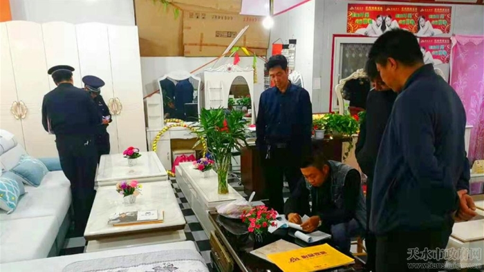 按照清水县委县政府安排部署,近日,由清水县公安局牵头,县市场监管局、县扶贫办联合组成调查组,对部分商户涉嫌哄抬物价向全县精准扶贫户销售家具窗帘等有关物品的行为进行调查和专项整治。