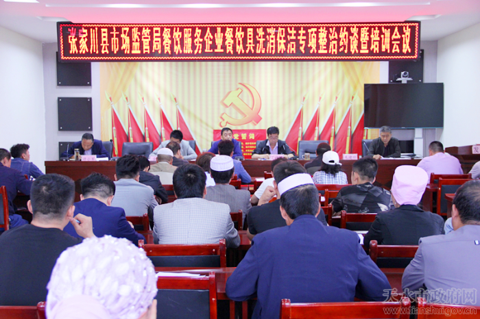 为进一步加强全县餐饮服务环节的餐饮具清洗消毒管理,切实保障全县群众“舌尖上的安全”。8月22日下午,张家川县市场监督管理局组织召开了餐饮服务企业餐饮具洗消保洁专项整治约谈暨培训会。县局领导班子成员,辖区内的食品经营单位负责人,县局食品股、检测中心负责人和市场监管综合执法队相关人员共计80余人参加会议。