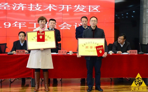 “开发区质量奖”是天水经济技术开发区管委会在质量领域设立的最高奖项,主要授予开发区具有独立法人资格,实施卓越绩效经营管理模式,在行业内处于领先地位,取得显著质量、经济和社会效益的企业或组织。经单位申报、专家组初审、现场评审、评审委员会审议表决、公示及会议审议等环节,最终确定天水长城成套开关股份有限公司、甘肃成纪生物药业有限公司为2018年度“开发区质量奖”获奖单位。