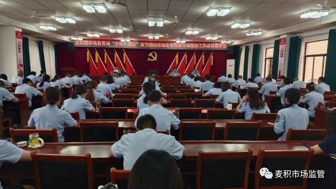 为切实维护中秋、国庆(以下简称“双节”)期间市场秩序,保障消费者度过欢乐祥和的节日,确保双节期间市场安全平稳有序,9月11日,麦积区市场监管局召开了2023年“中秋、国庆”双节期间市场监管领域专项整治工作动员部署会。