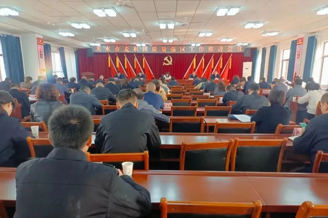 近日,麦积区召开质量强区工作推进会议,区委常委、统战部部长马秀丽出席并讲话,区委常委、副区长刘秦文主持会议。区质量强区建设协调推进领导小组成员单位和各镇、街道负责人参加会议。