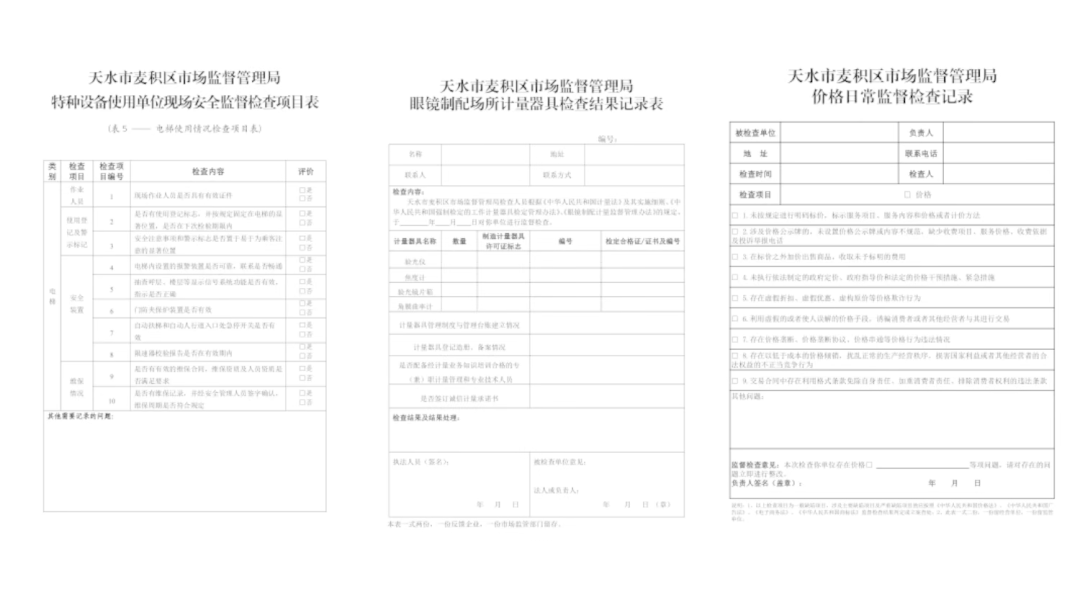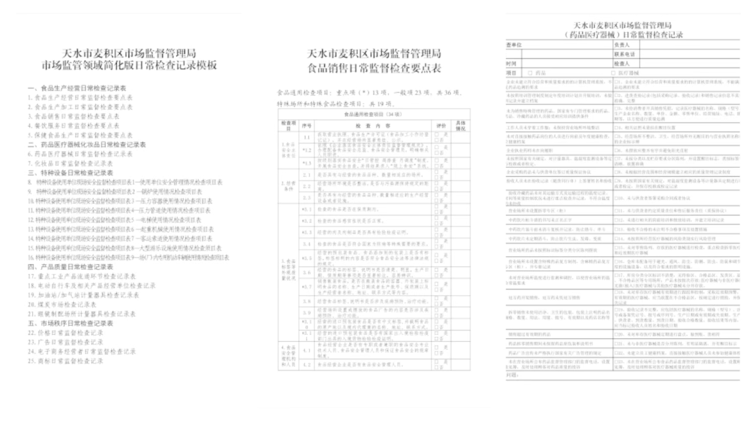 为推进基层监管执法标准化、流程化、格式化,麦积区市场监管局对照法律法规,积极探索和创新工作机制,制定了《市场监管领域简化版日常检查记录表》,实行“勾选式”检查,进一步提升基层监管执法效能。