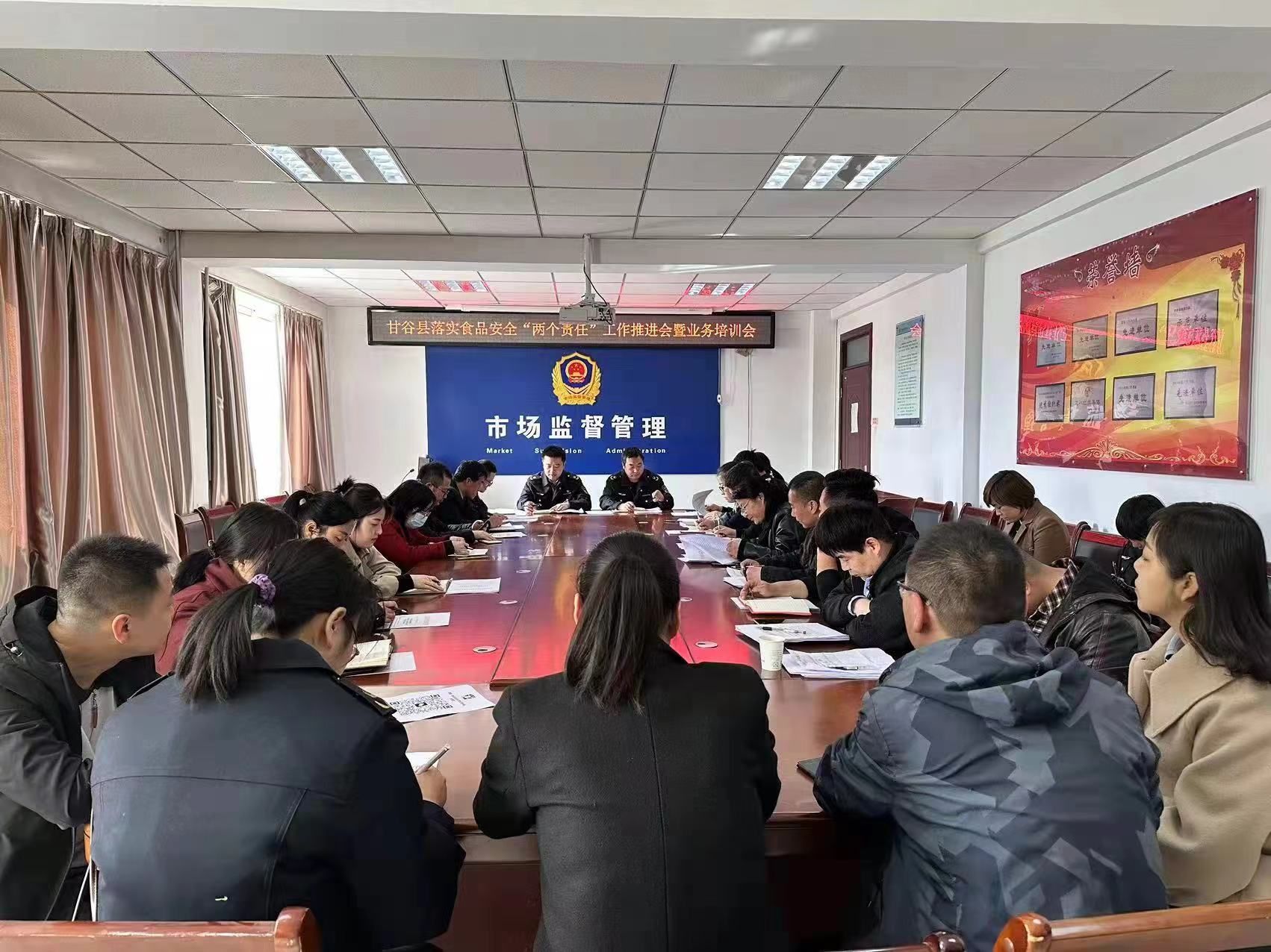 为进一步推进食品安全“两个责任”工作深入落实,提高包保督导工作成效,3月25日,甘谷县食药安委办组织召开食品安全“两个责任”工作推进会暨业务培训会。各乡镇食药安办负责人及乡镇市场监管所业务骨干共计30余人参加会议。