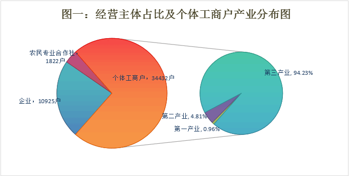2024年第1季度,麦积区实有各类经营主体47179户,其中,个体工商户34432户,占比72.98%,同比增长4.90%,环比增长0.56%,一、二、三产业占比分别为0.96%,4.81%,94.23%。