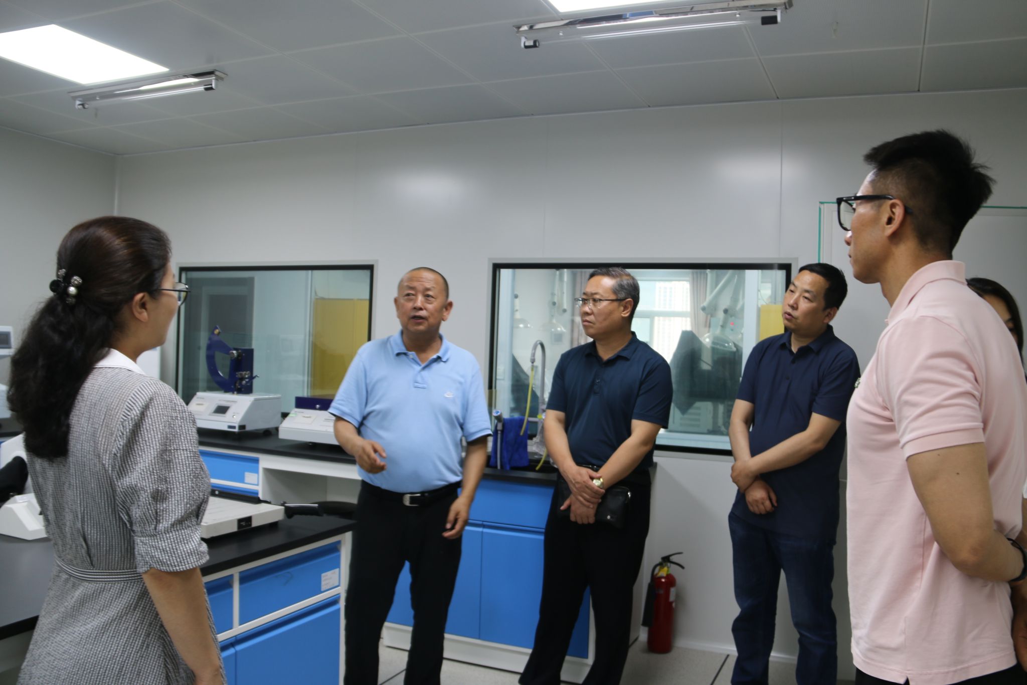 7月9日至10日,甘肃省纤维质量监测中心主任周震一行3人,深入甘肃省产品质量监督检验东部分中心调研指导纤维质量监测工作,市市场监管局党组成员、副局长贾文斌陪同调研。