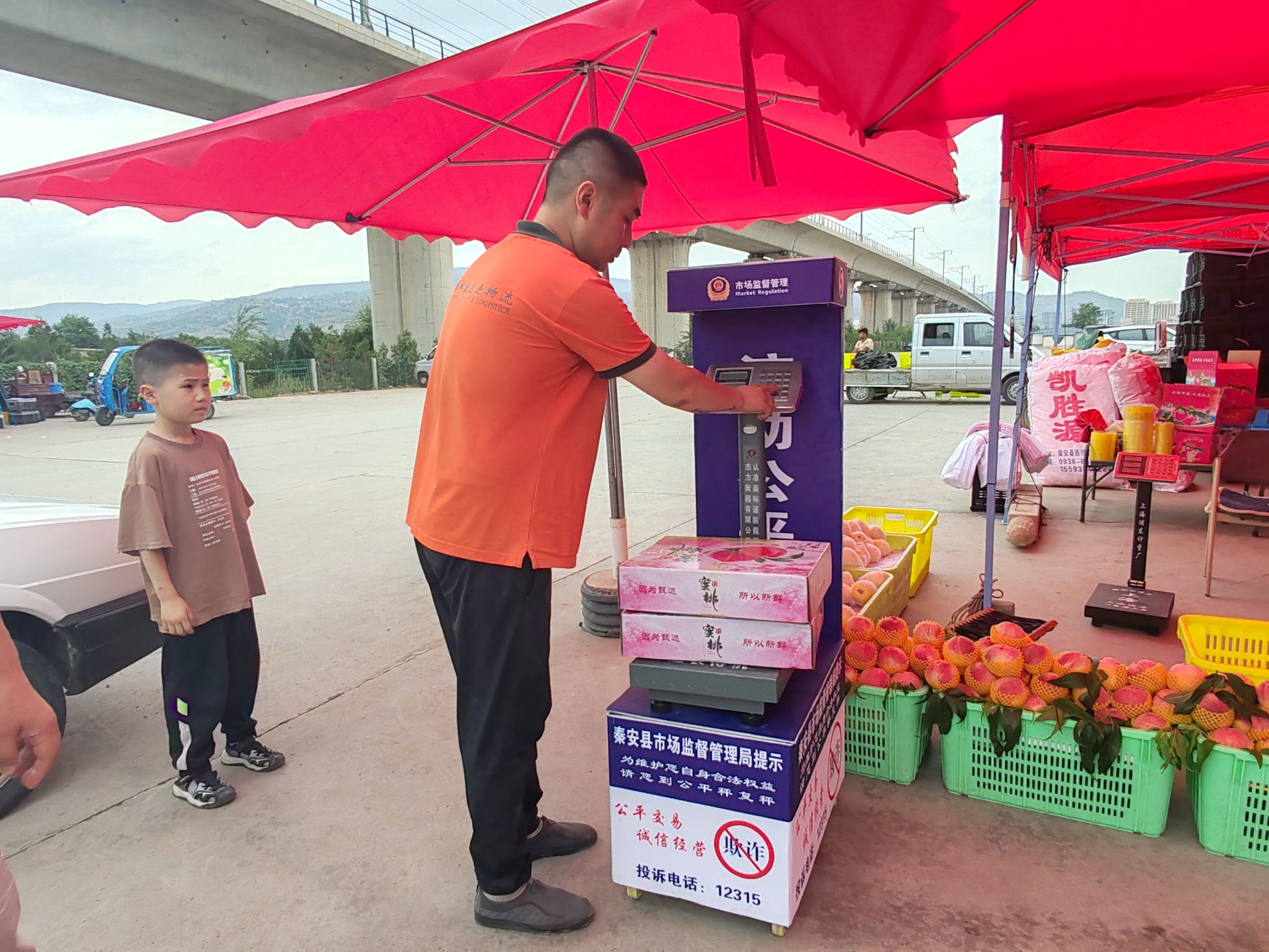 秦安蜜桃、秦安花椒目前已大量上市。近日,秦安县市场监管局结合县域实际,向蜜桃、花椒交易集中的刘坪、叶堡等乡镇投放了4台流动公平秤,进一步规范了民生领域市场计量秩序,坚决遏制“缺斤短两”计量违法行为,切实维护人民群众消费权益。
