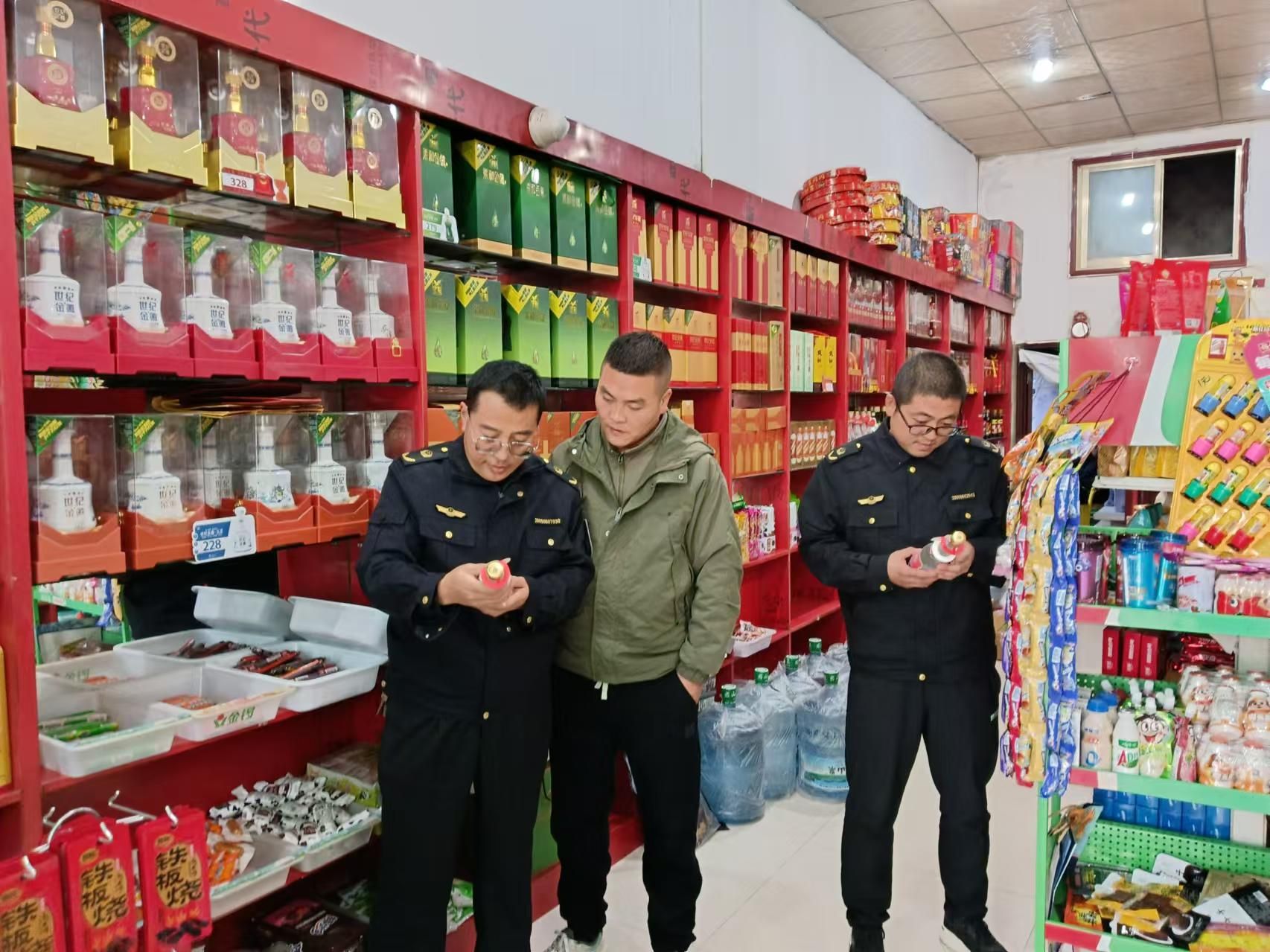 二是突出重点强化监督检查。执法人员对各种酒类商品销售点、集贸市场和散装白酒经营者,进行拉网式检查,查看是否存在“特供酒”标签或其他标签标识,是否擅自在酒类包装上标注“特供酒”标识等,是否严格落实进货查验记录制度,是否索取酒类生产经营者的相关资质和质量合格证明,是否建立出具销售票据和销售记录管理制度。告诫散装酒经营者严禁私自对散装酒进行加工兑制保健酒、药酒,严禁包装、装潢冒用他人厂名、厂址,掺杂使假、以次充好、以假充真的违法违规行为。
