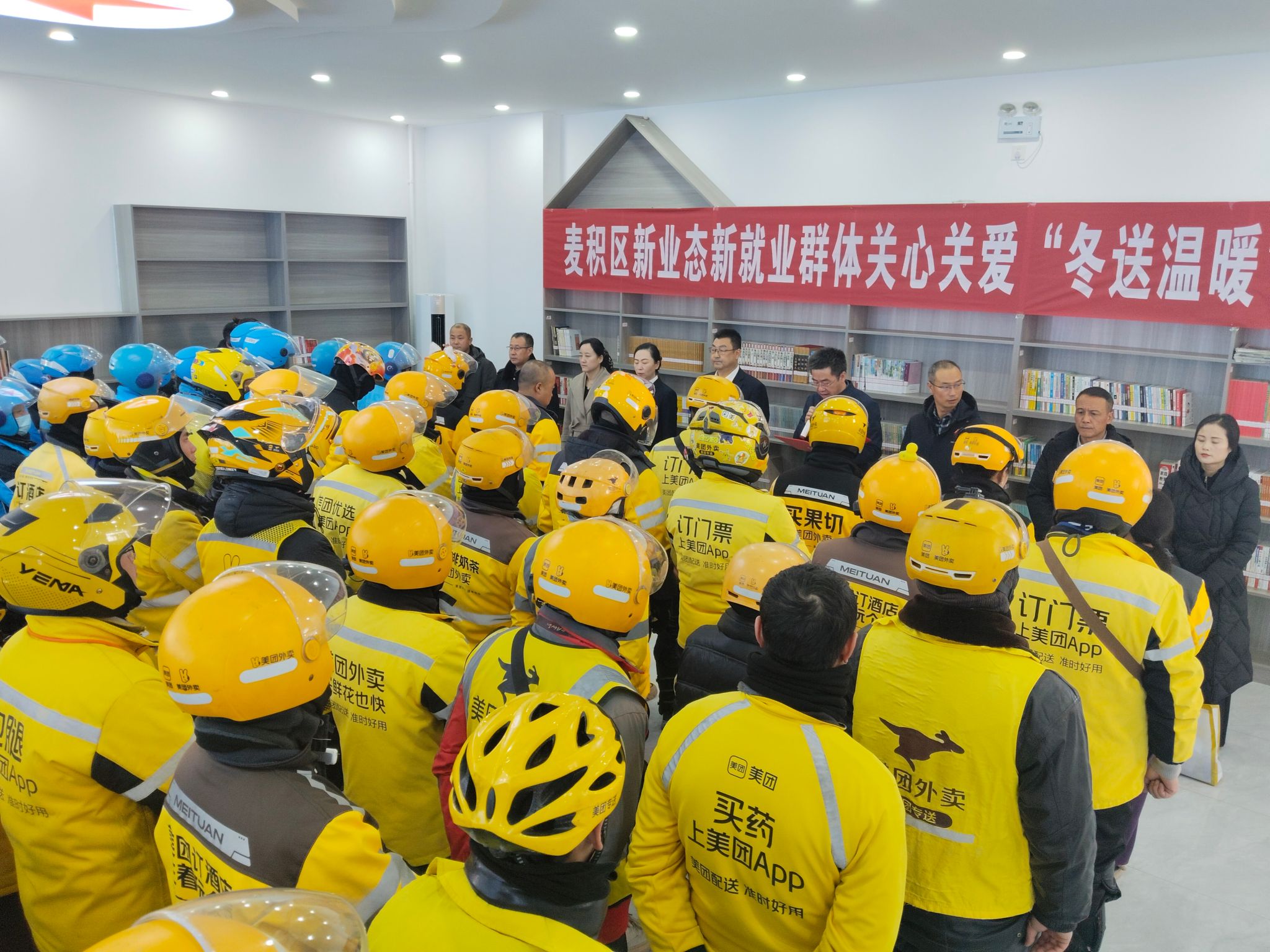 近日,天水市麦积区总工会联合区委社会工作部、区市场监管局,在区新兴领域区域性党群活动服务中心,开展了新就业群体“冬送温暖”活动,为网约配送员、快递员、货车司机等新就业群体送上暖心服务。区人大常委会副主任高炳蔚、区委组织部常务副部长李雄颢等领导出席活动。