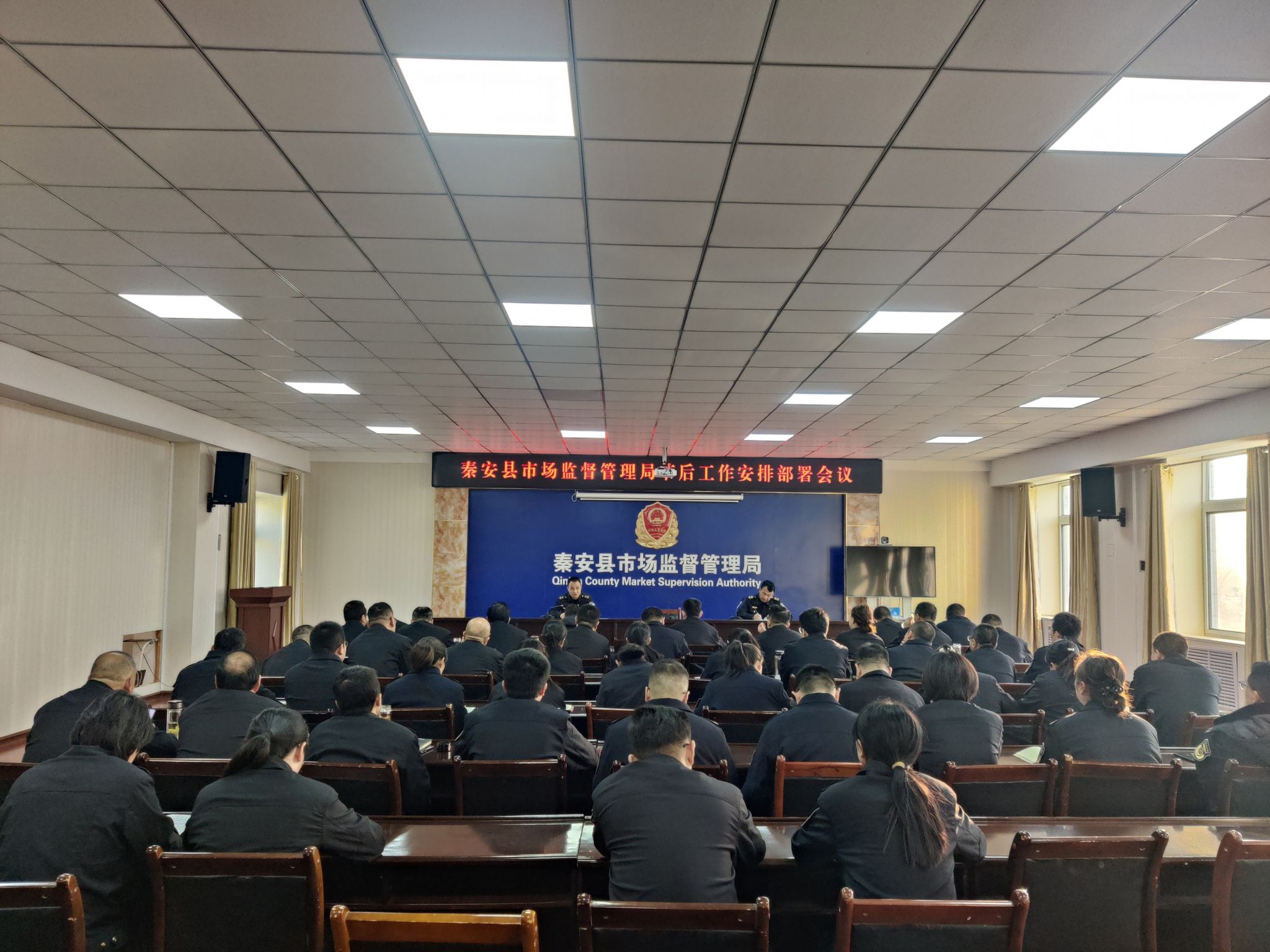 2月5日,大年初八,新春上班第一天!秦安县市场监管局第一时间召开节后工作安排部署会议,简要回顾过去一年成绩,安排部署近期重点工作,动员全局干部职工增强责任感,提振精气神、收心鼓劲、奋勇争先、聚焦重点、狠抓落实,确保2025年工作开好局,起好步。