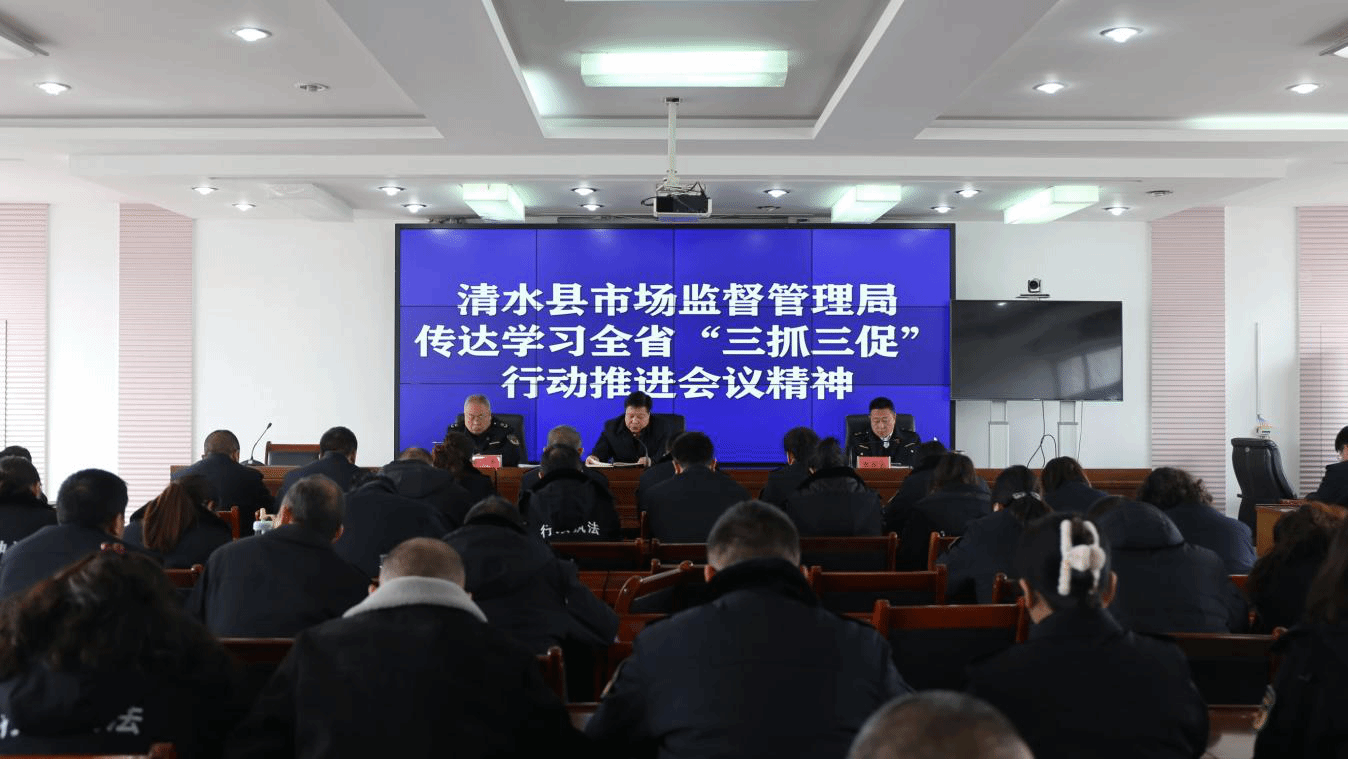 全省 “三抓三促” 行动推进会议在兰州召开,为深入贯彻此次会议精神,2月6日,清水县市场监管局迅速响应,召开专题会议进行传达学习与工作部署,旨在通过 “三抓三促” 行动,进一步提升干部能力素质,转变工作作风,提高工作效能,推动市场监管工作高质量发展。