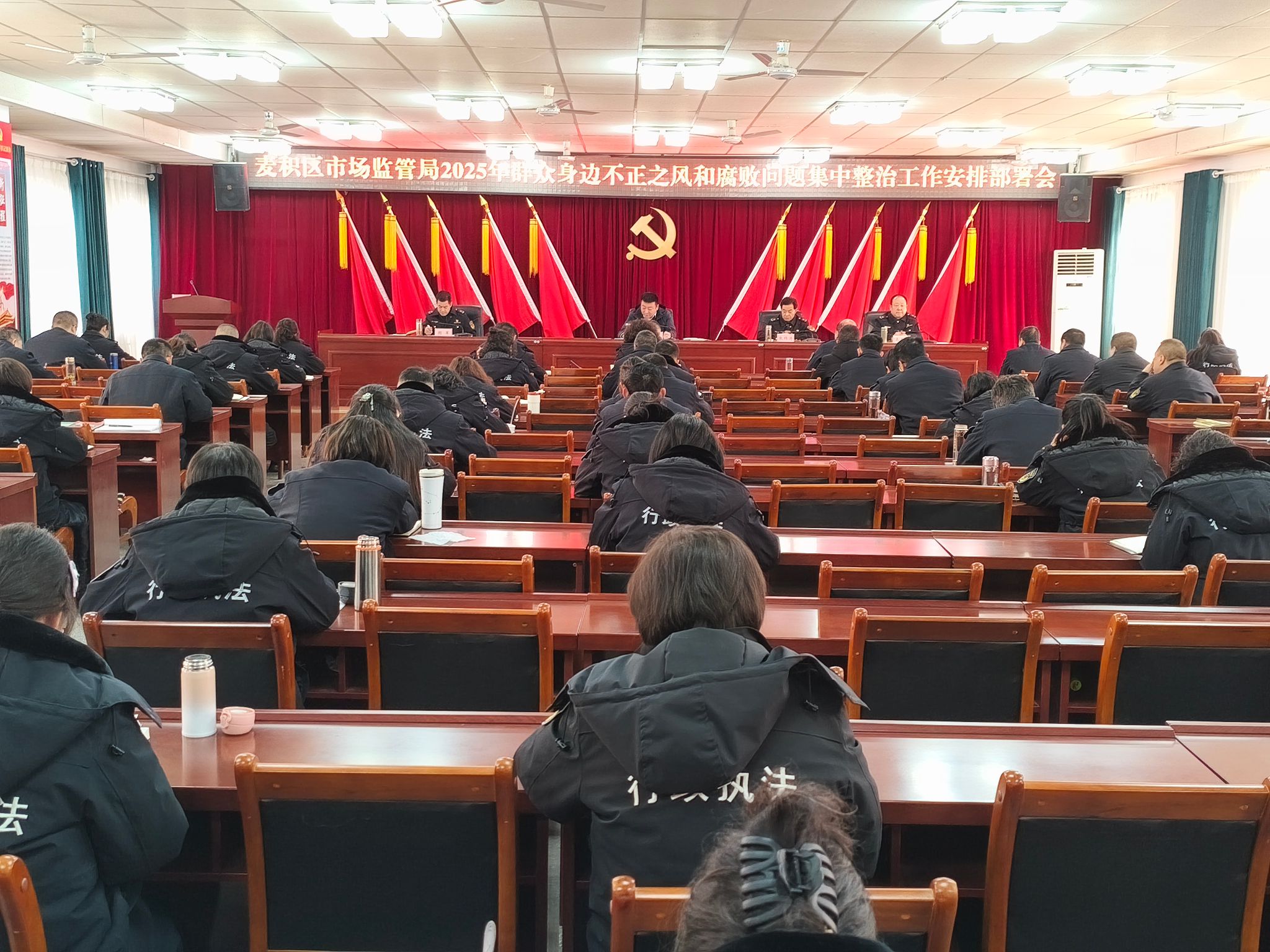 2月10日,麦积区市场监管局召开2025年全区市场监管领域群众身边不正之风和腐败问题集中整治工作推进会。区局党组书记、局长张海斌同志主持会议并讲话。局党组班子成员、机关股室和下属单位全体人员、各市场监管所负责人共计80余人参加会议。