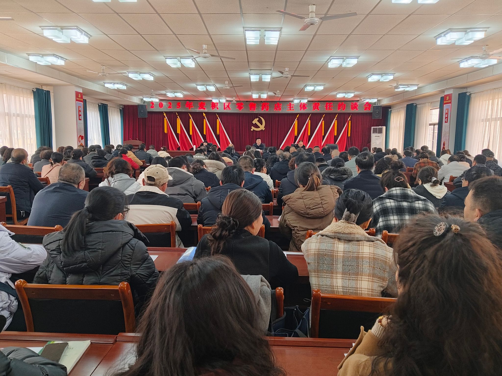 为进一步强化零售药店主体责任意识,全面落实监管责任,提升药品安全管理水平,2月25日,麦积区市场监管局召开了全区零售药店主体责任约谈会。辖区单体药店负责人、连锁药店片区负责人及部分门店代表,共计200余人参会。