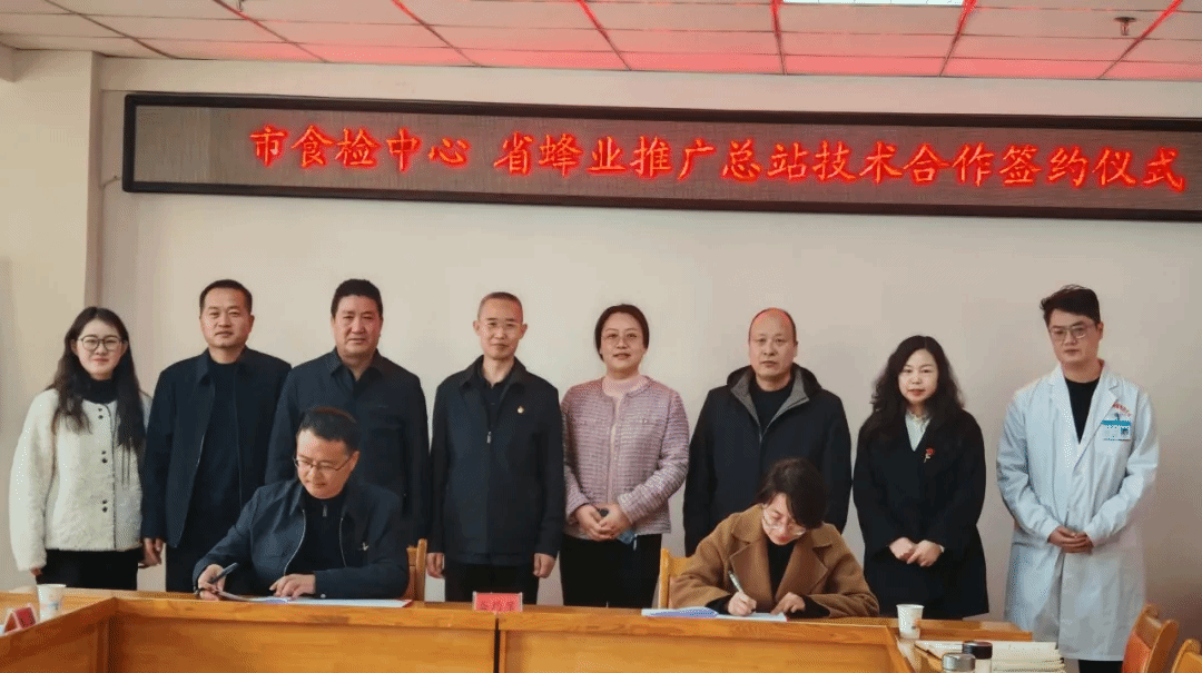 3月21日,天水市食品检验检测中心与甘肃省蜂业技术推广总站举行蜂产品质量安全检测合作签约仪式,甘肃省蜂业技术推广总站和天水市食品检验检测中心全体班子成员以及双方业务技术骨干10余人出席,市食检中心主任毛焕军主持仪式。