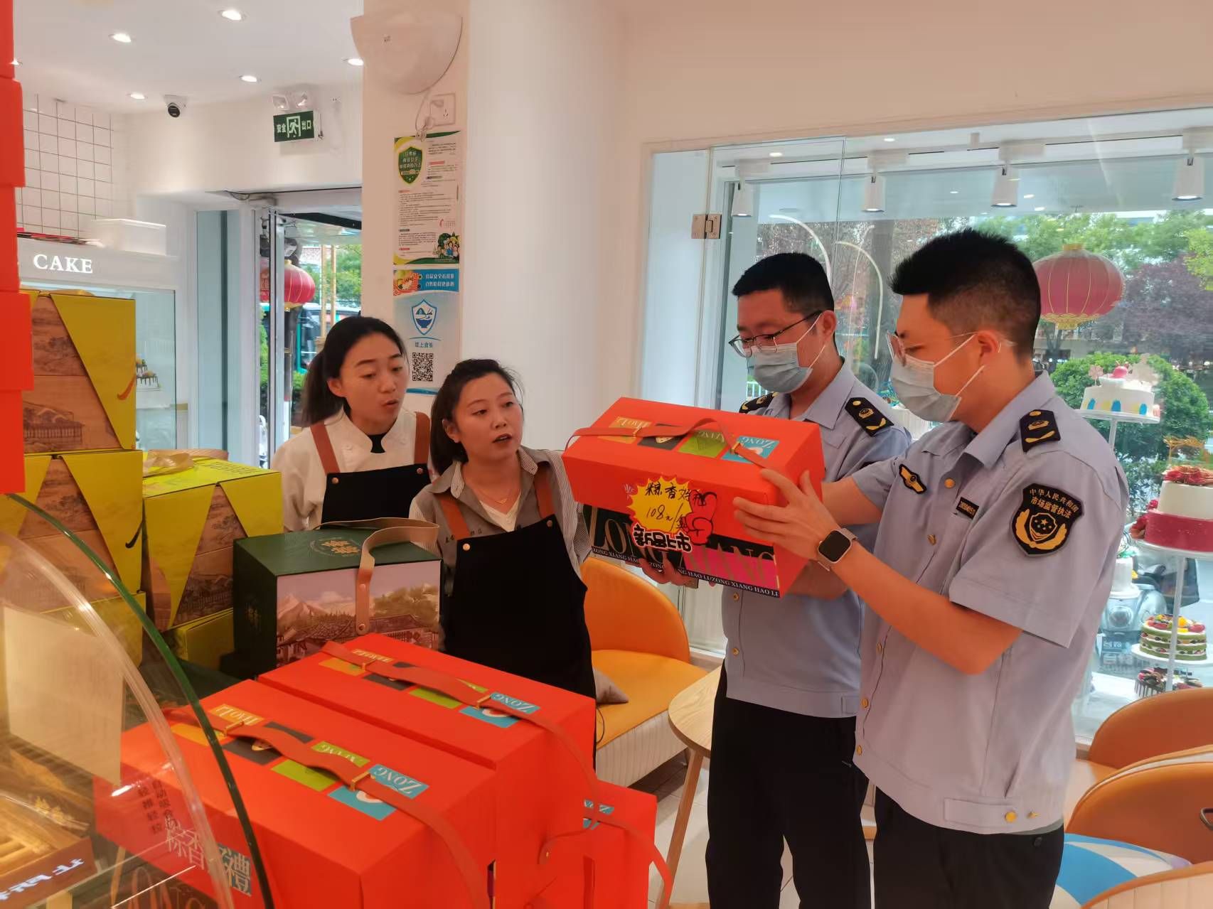 紧盯行业乱象,严管过度包装。为遏制“天价粽”“奢华包装”等乱象,执法人员以看、问、算等方式,重点核查粽子包装层数、空隙率及包装成本占比,严查混装贵金属等行为。同时,执法人员通过在经营门店张贴“端午粽子消费提示”、向经营者宣传讲解《限制商品过度包装要求食品和化妆品》(GB 23350 - 2021)标准等方式方法,引导企业规范采购行为,推动粽子包装“瘦身”,践行绿色消费理念。