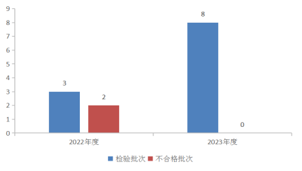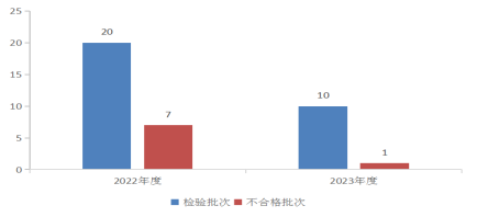 (四)塑料购物袋。抽查5家经营企业的8批次塑料购物袋产品,未检出不合格产品,抽查不合格率与2022年度同比下降66.7个百分点(见图4)。