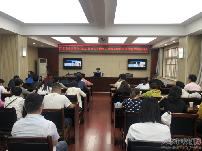 为深入开展市场监管领域行业乱象整治,有力打击电信网络诈骗违法行为,保护人民群众财产安全,6月4日,市市场监督管理局和市公安局反诈骗中心联合举办了天水市企事业单位法定代表人及财务人员防范电信网络诈骗专题培训会,全市40余家企事业单位的法定代表人及财务人员参加会议。
