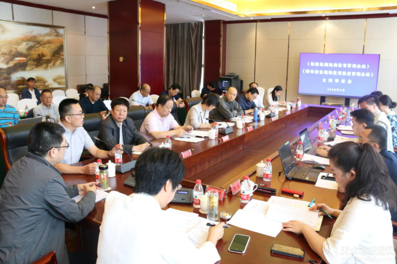 彭剑鸣简要介绍了天水市基本情况。他表示,加强立法工作是推进市场监管事业发展的客观需要。制订出台《检验检测机构监督管理办法》,是贯彻落实党中央、国务院关于推进“放管服”改革决策部署的重要举措,对健全完善以“双随机、一公开’监管为基本手段、以重点监管为补充、以信用监管为基础的新型监管机制,激发检验检测市场活力,规范检验检测市场秩序,树立行业公信力具有深远而现实的意义。