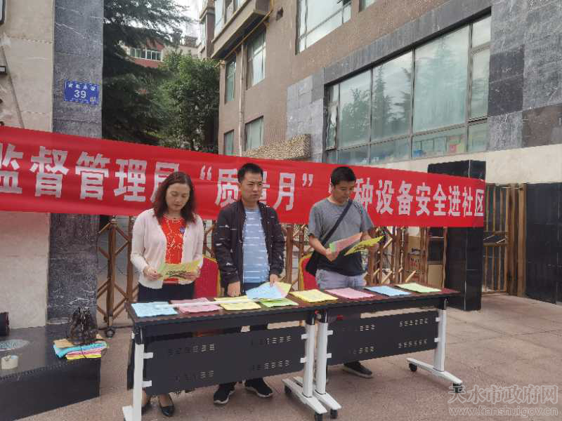 随着天水市2020年“质量月”主题宣传活动不断深入推进,9月11日,市市场监管局组织特监科、市特检所工作人员开展特种设备安全宣传进社区活动。
