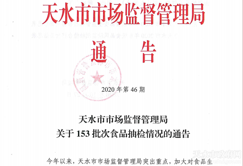 《通告》详情请登录“天水市市场监督管理局”门户网站或在“天水市场监管”微信公众号查看。