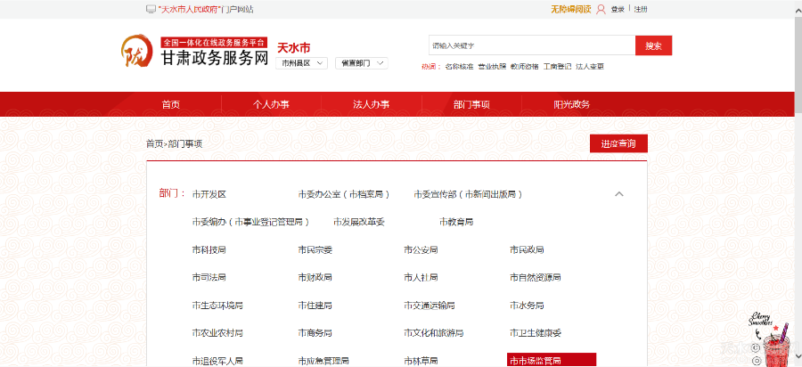 近期,由天水市市场监管局承担的“药品监管互联网+政务服务平台系统”试点项目已基本完成系统前期测试,即将上线试运行。系统上线后我市药械政务服务事项将实现“一网通办”。